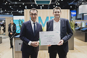 Bildunterschrift: Bundesminister für Ernährung und Landwirtschaft Cem Özdemir überreicht Dr. Jörg Geier, Stabsstellenleiter Kreisentwicklung, den Förderbescheid für "SmarterWinterdienst" (Quelle: BMEL/photothek).