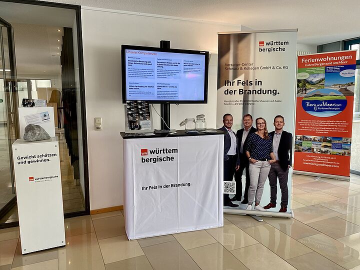 In der Ausstellung, die im Foyer des Landratsamtes Rhön-Grabfeld stattfindet, können Einwohner und Unternehmen der Region sich umfassend über ein breites Spektrum an Versicherungsprodukten und -dienstleistungen informieren.