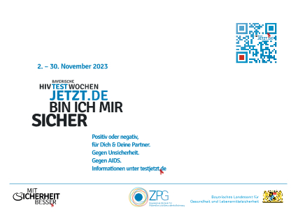 Dafür stehen die Fachkräfte an den Gesundheitsämtern, AIDS-Beratungsstellen und AIDS-Hilfen in Bayern bereit – mit Veranstaltungen während den HIV-Testwochen im November und mit ihren regulären Angeboten in allen anderen Wochen des Jahres.