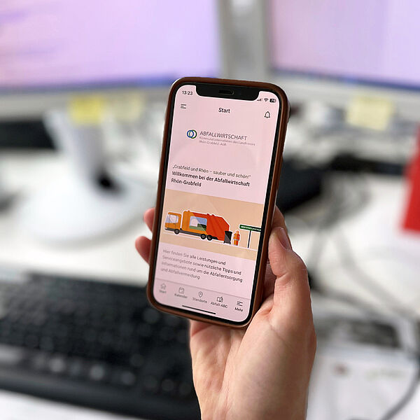 Bildunterschrift: Alle Informationen zu Müllabfuhrterminen und Entsorgung von Abfällen immer zur Hand haben – das ist mit der Abfall RG-App möglich.