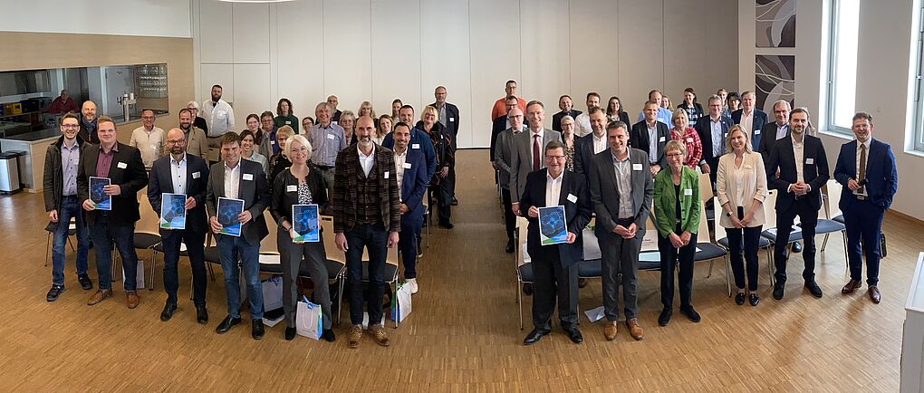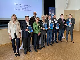 Bildunterschrift: Der Landkreis Rhön-Grabfeld bewirbt sich um das Qualitätssiegel „Digitale Bildungsregion“. Hierfür haben über ein Jahr zahlreiche Akteurinnen und Akteure aus den verschiedensten Bereichen und Branchen aktiv zusammengearbeitet. Mit der Abschlussveranstaltung in Heustreu wurde ein wichtiger weiterer Meilenstein im Bewerbungsprozess gesetzt.