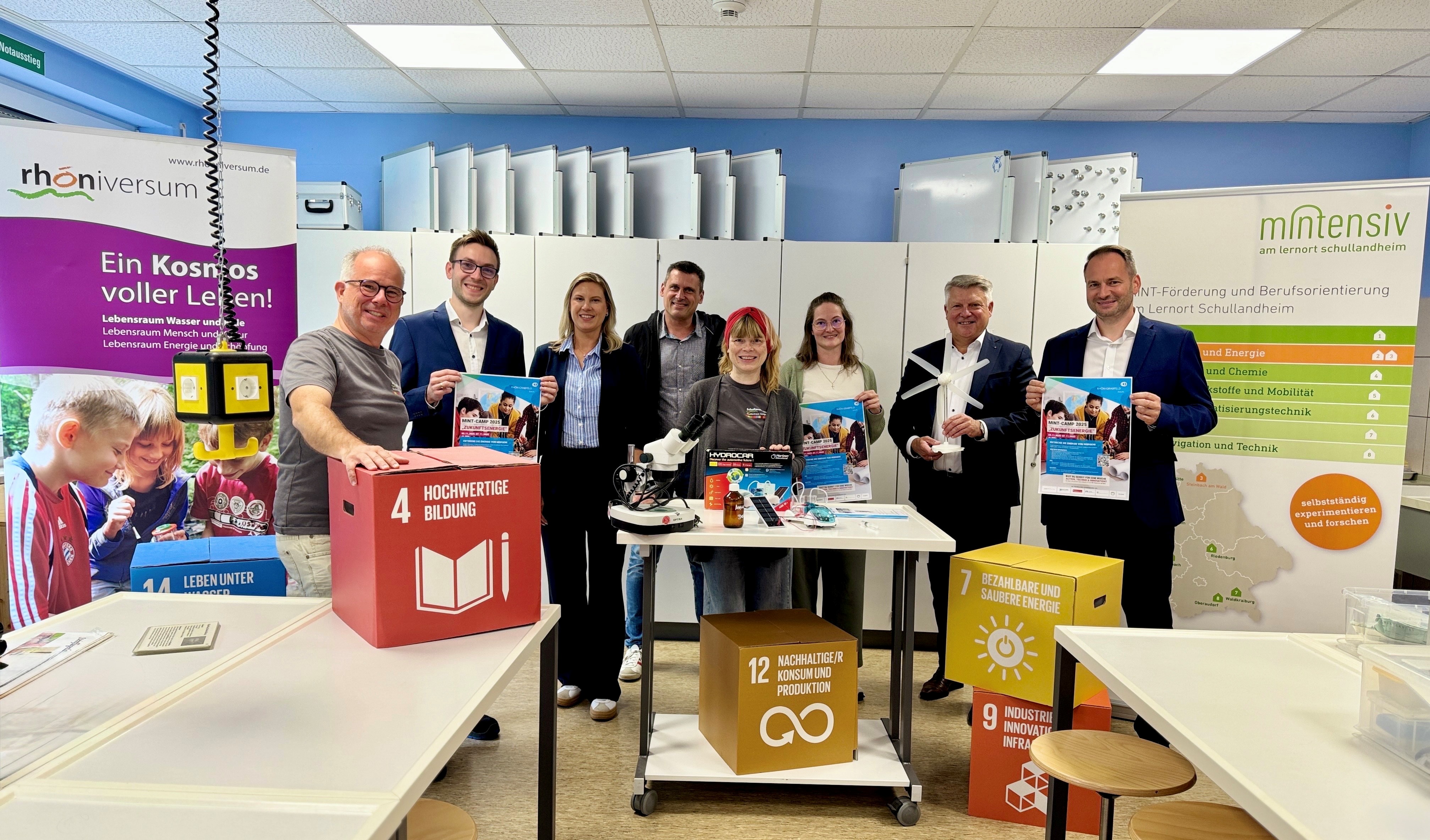 Anlässlich des Welttages für Kompetenzerwerb junger Menschen kamen die Unterstützerinnen und Unterstützer sowie die beteiligten Firmen zusammen, um gemeinsam den Startschuss für das MINT-Camp 2025 zu geben und ihre Zusammenarbeit zu bekräftigen. Dr. Jörg Geier, Abteilungsleiter der Kreisentwicklung am Landratsamt Rhön-Grabfeld, dankte den Sponsoren und Unterstützern ausdrücklich für diese Möglichkeit: „MINT-Fachkräfte sind in Rhön-Grabfeld und darüber hinaus gefragt wie nie. Wir hoffen aus der Region für die Region die Schülerinnen und Schüler für die spannenden Themen zu begeistern und damit die nächste Generation an Fachkräften langfristig zu sichern.“ Er bedankte sich auch im Namen von Landrat Thomas Habermann beim Schullandheim Bauersberg und den beteiligten Unternehmen für die Bereitschaft das erste MINT-Camp im Landkreis Rhön-Grabfeld möglich zu machen.