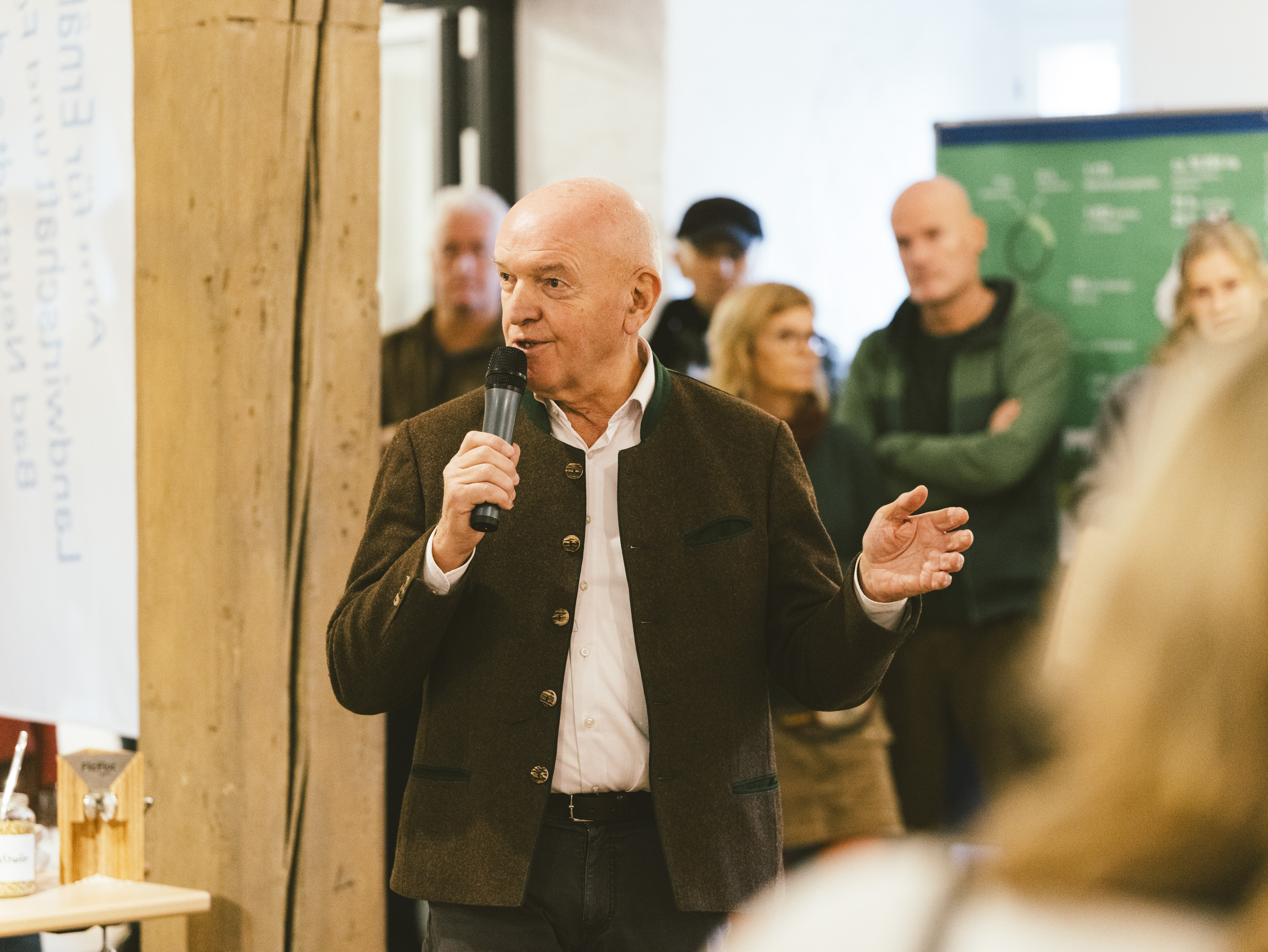 Landrat Thomas Habermann zeigte sich bei seinem Rundgang beeindruckt vom Engagement der Ausstellerinnen und Aussteller: „Die BioRegioRhön ist jedes Mal ein wunderbarer Spiegel der Leistungsstärke unserer heimischen Betriebe“, sagte er. Rhön-Grabfeld zähle zu den Vorreitern im Freistaat Bayern: Bereits über 21 Prozent der landwirtschaftlichen Fläche im Landkreis werden ökologisch bewirtschaftet – deutlich über Landes- und Bundesdurchschnitt. Hier gilt es, die Quote weiter zu steigern. „Viele Menschen hier bei uns schätzen, dass sie sich mit Lebensmitteln versorgen können, die direkt vor ihrer Haustür erzeugt werden. Das ist ein Privileg und ein Geschenk des ländlichen Raums“, davon ist Landrat Habermann überzeugt.