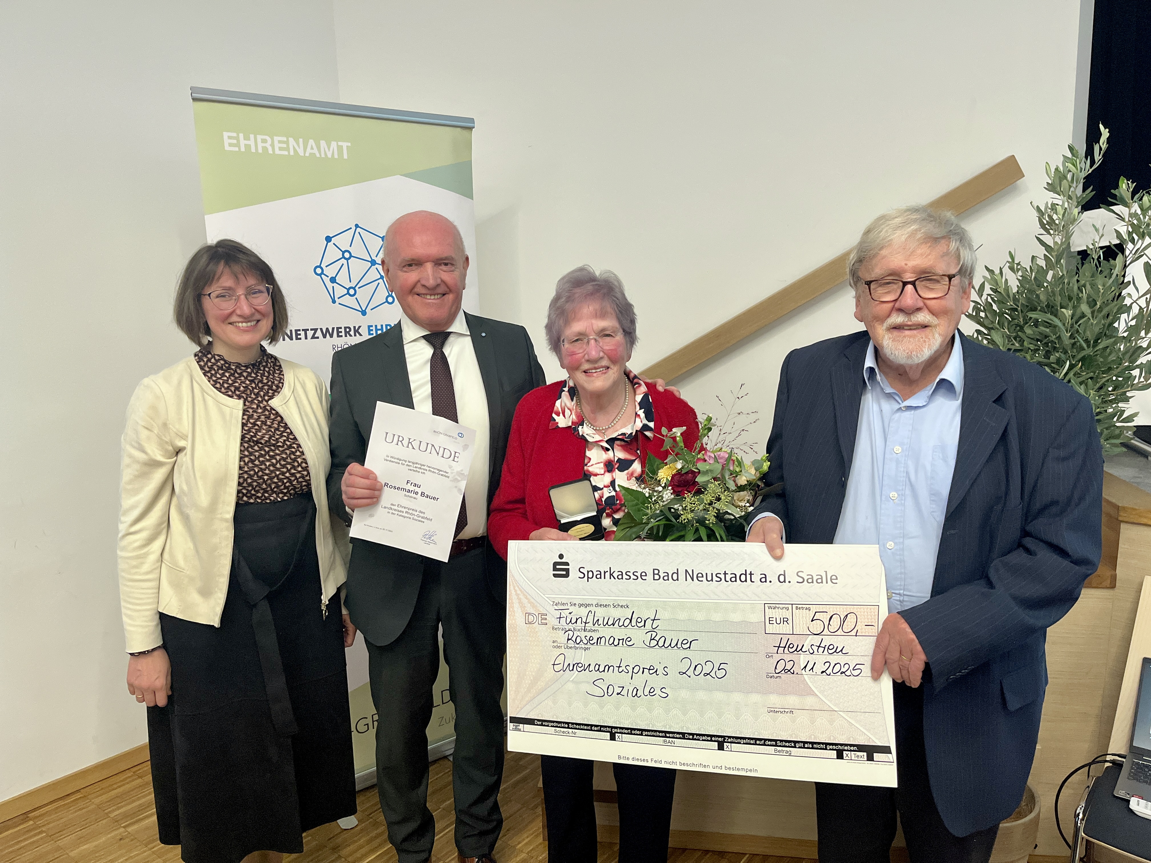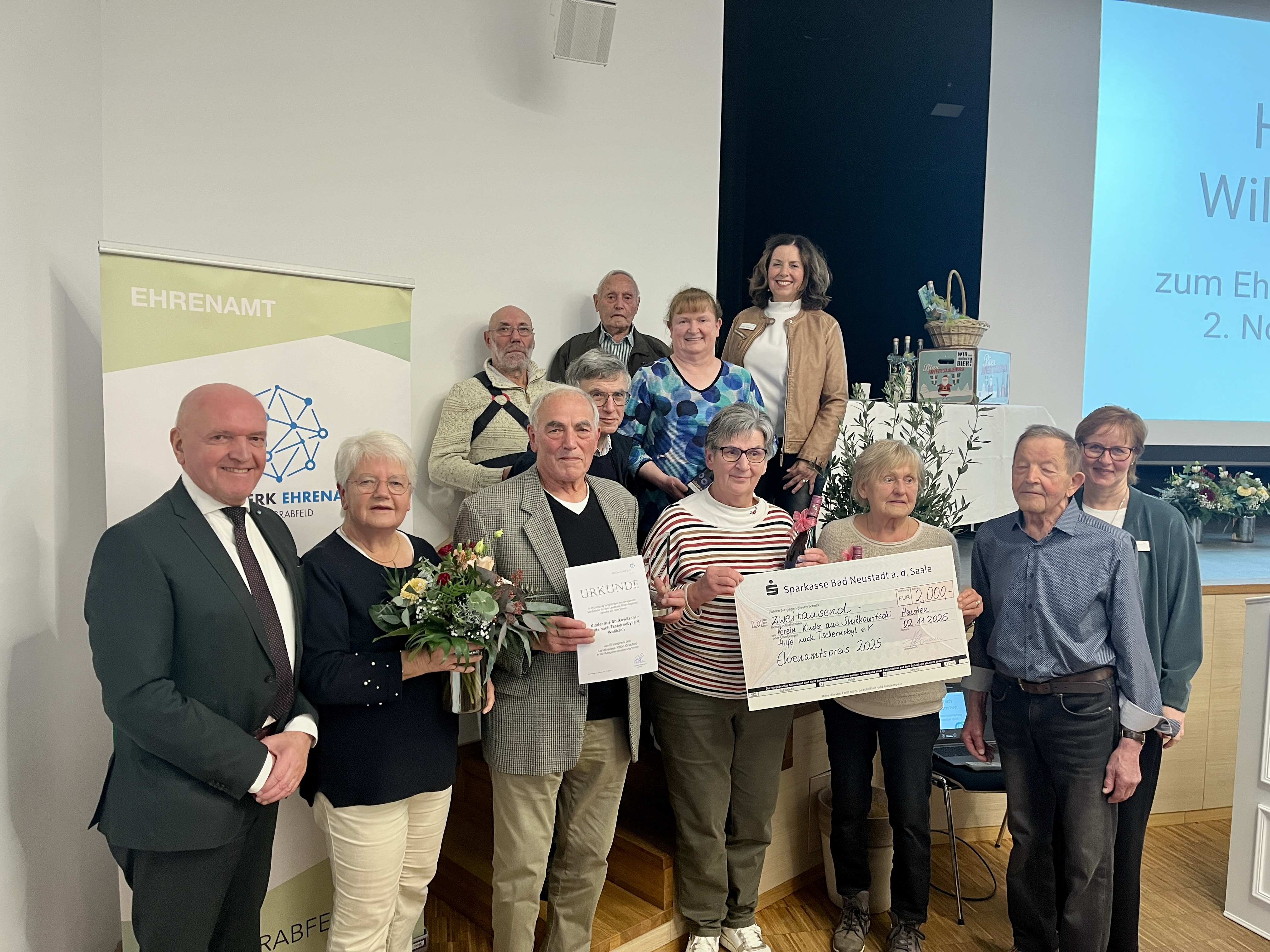 In der Kategorie „Gruppierung/Verein“ gewann der Verein „Kinder aus Shitkowitschi – Hilfe nach Tschernobyl e.V.“ aus Wollbach den Ehrenamtspreis. In der Kategorie „Soziales“ freute sich Rosemarie Bauer aus Schönau über die Auszeichnung, Klaus Greier aus Hollstadt gewann den Ehrenamtspreis in der Kategorie „Sport“ sowie Manfred Reder aus Bischofsheim i. d. Rhön in der Kategorie „Kultur“.