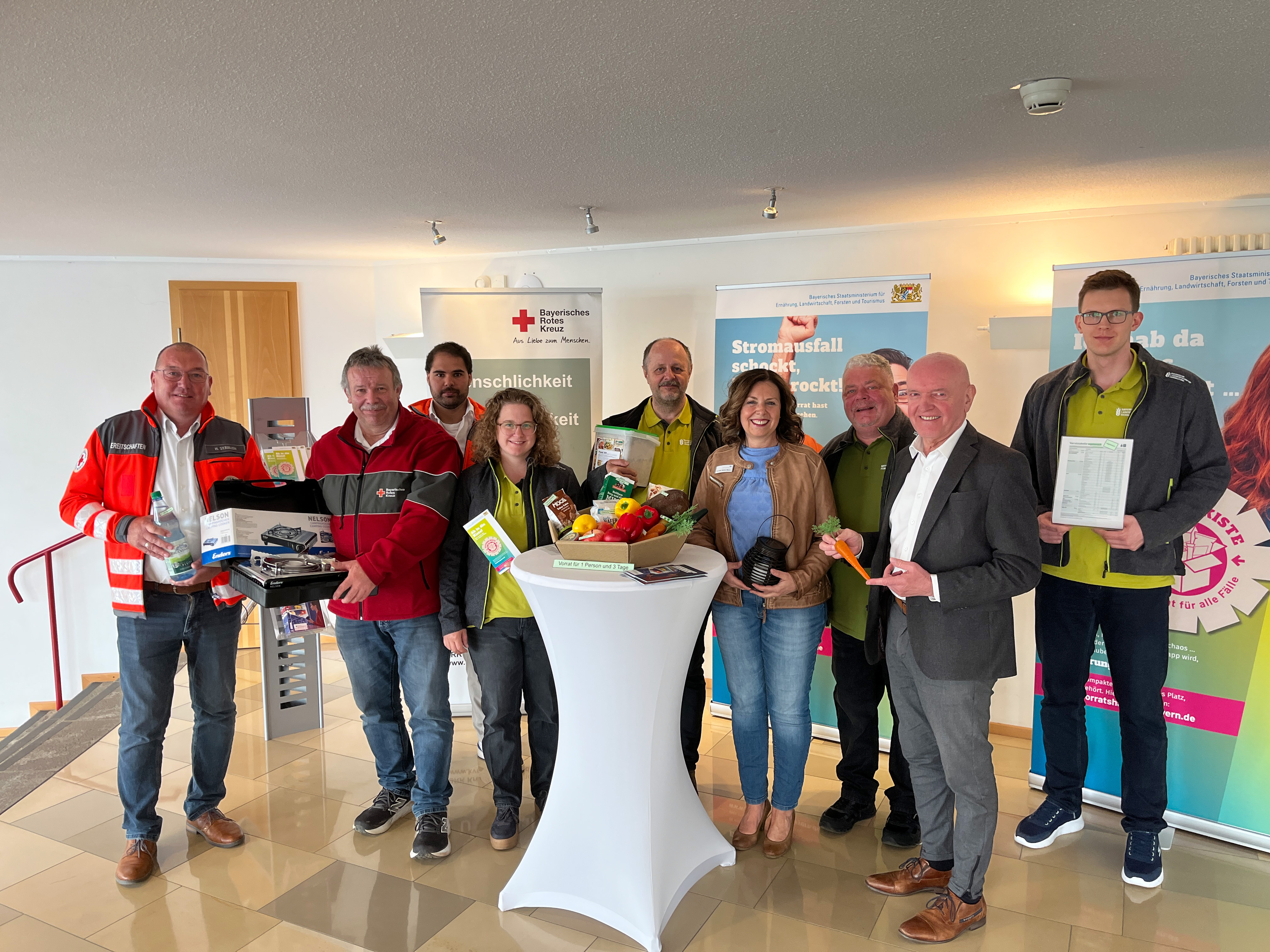 Ergänzend liegen Broschüren des Bundesamtes für Bevölkerungsschutz und Katastrophenhilfe sowie des Bayerischen Staatsministeriums für Ernährung, Landwirtschaft, Forsten und Tourismus aus, die kostenfrei mitgenommen werden kann. Sie bietet weiterführende Hinweise und Checklisten für die persönliche Vorsorge.