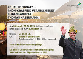 Nach 23 Jahren an der Spitze des Landkreises Rhön-Grabfeld möchte sich Landrat Thomas Habermann mit einem großen Bürgerfest von den Menschen verabschieden, die ihm in seiner Amtszeit besonders am Herzen lagen: den Bürgerinnen und Bürgern.